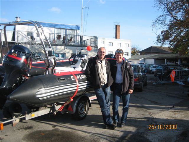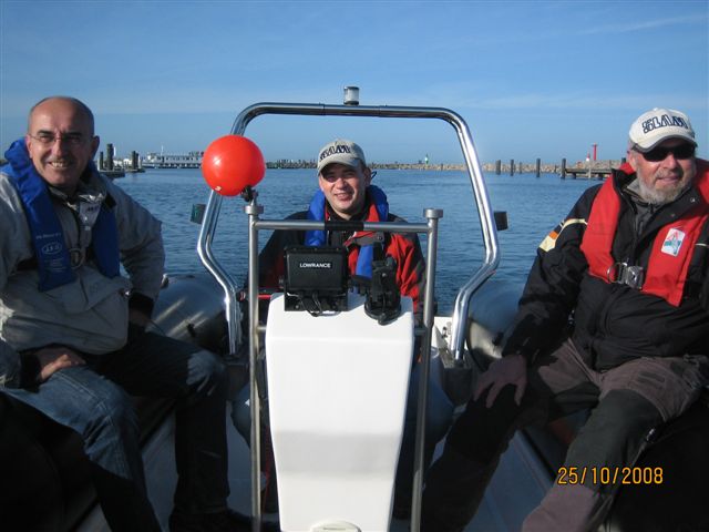 Von vier in Frage kommenden gebrauchten Motorbooten viel die engere Auswahl auf ein Schlauchboot im Hafen von Warnemünde. Die Vorstandsmitglieder G.Ertl und R.Taibl fuhren am 24. Oktober an die Ostsee um das Boot vor Ort zu besichtigen.