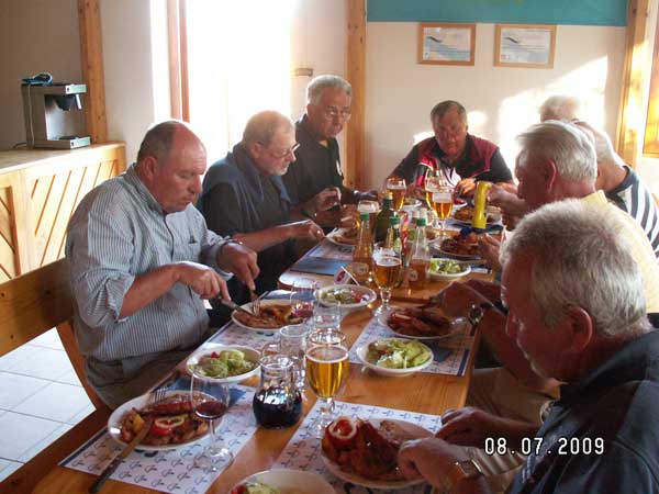 Beim gemeinsamen Abendessen im Storchennest war die Strapaze vom ersten Tag