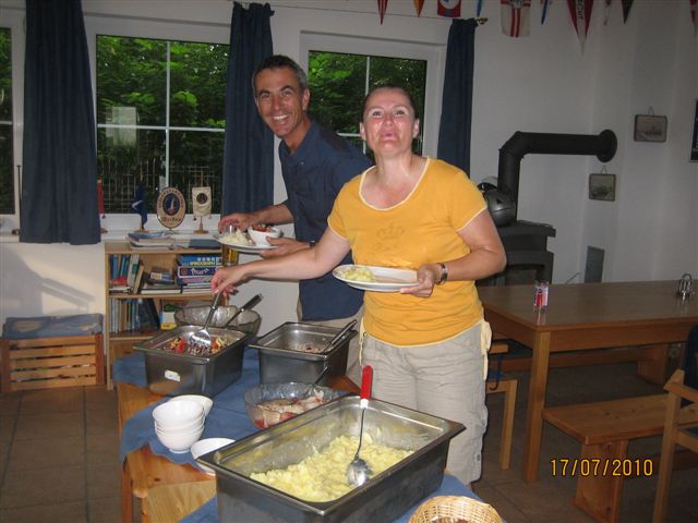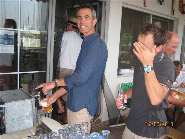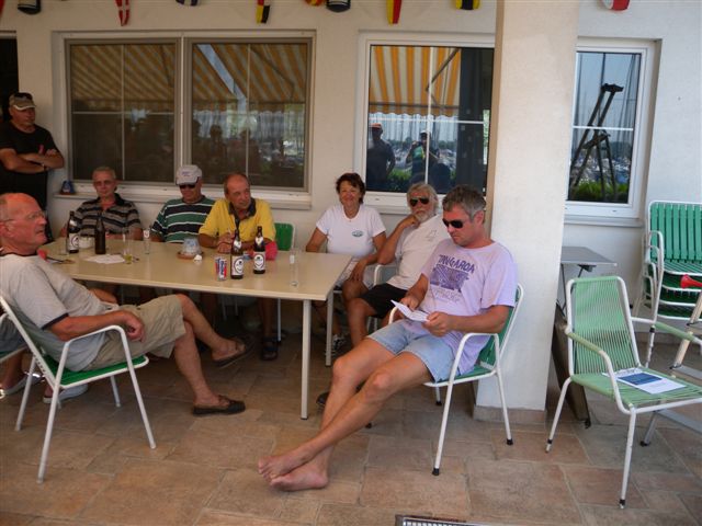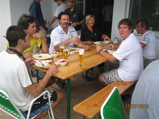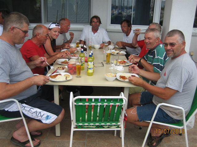 Der Seglerhock mit den vom Küchenpersonal liebevoll zubereiteten Grillspezialitäten und reichlichen Beilagen, sowie die gut gekühlten Getränke, waren ein willkommener Genuss für die Entbehrungen auf der Wettfahrtbahn. Die Stimmung war großartig und hielt bis in die späte Nacht hinein an.