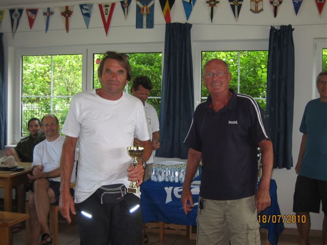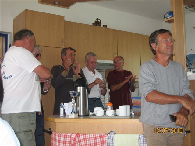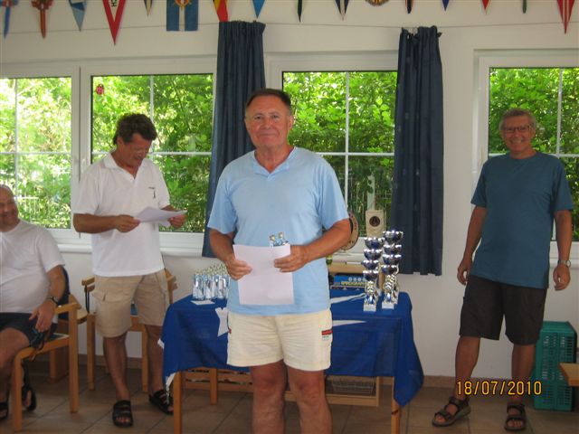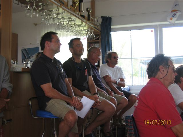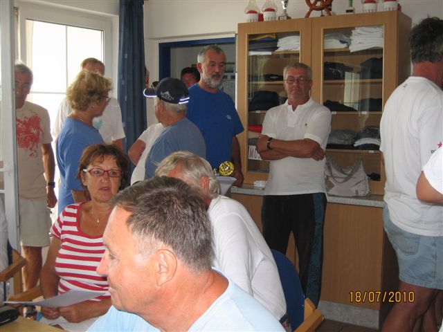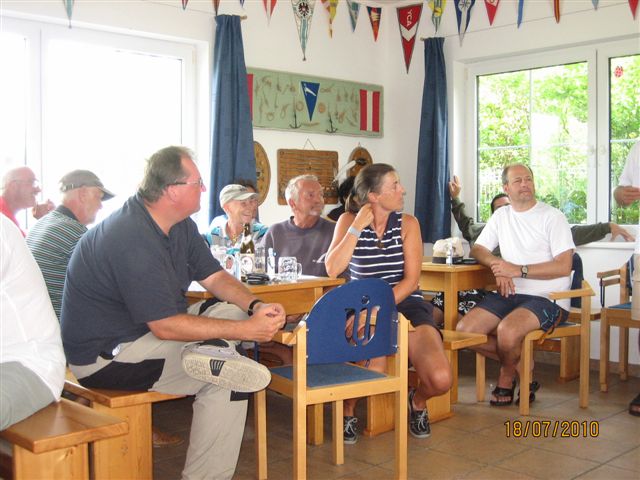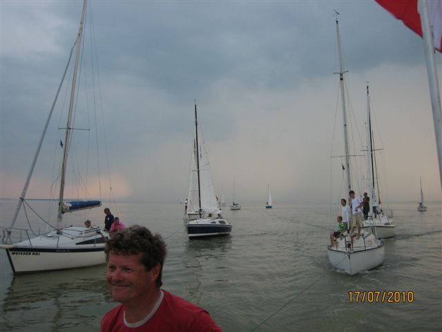Bei so manchem Gespräch wurde über den angekündigten Sturm für den nächsten Wettfahrttag diskutiert. Ab Mitternacht war es dann so weit. Windstärken bis zu 32 kn führten zu einer Verschiebung des für 10:00 Uhr geplanten Starts. Nach Bewertung der Wolkengebilde und Einholung von fachlichen Wetterinformationen entschied sich die Wettfahrtleitung für eine vorverlegte Durchführung der Siegerehrung. Nach Beendigung der Siegerehrung traten die Teilnehmer „mit“ und „ohne“ Boot die Heimreise an.