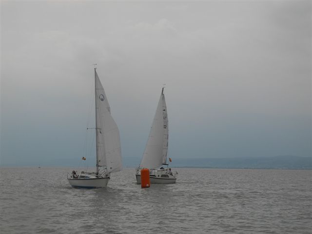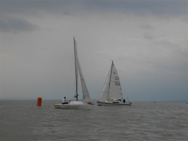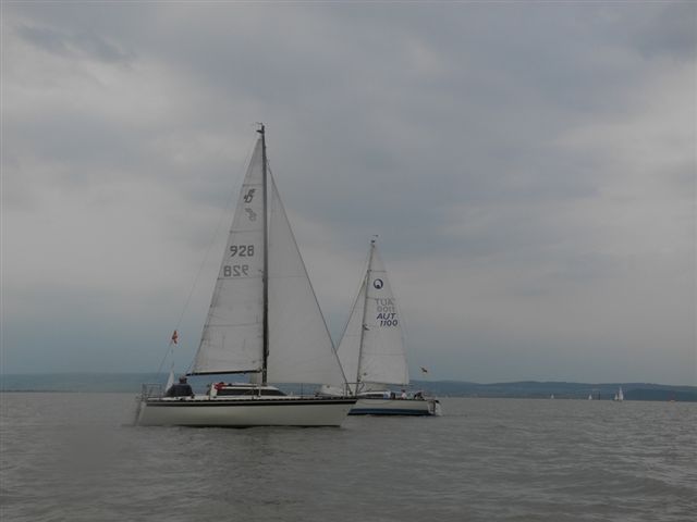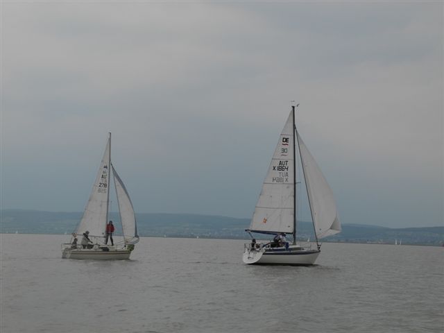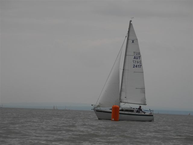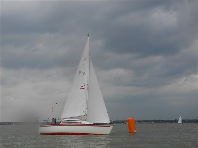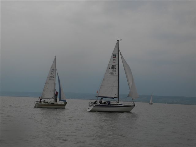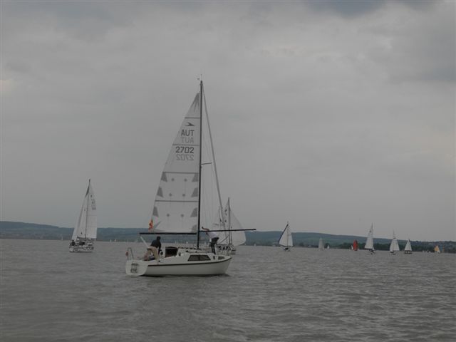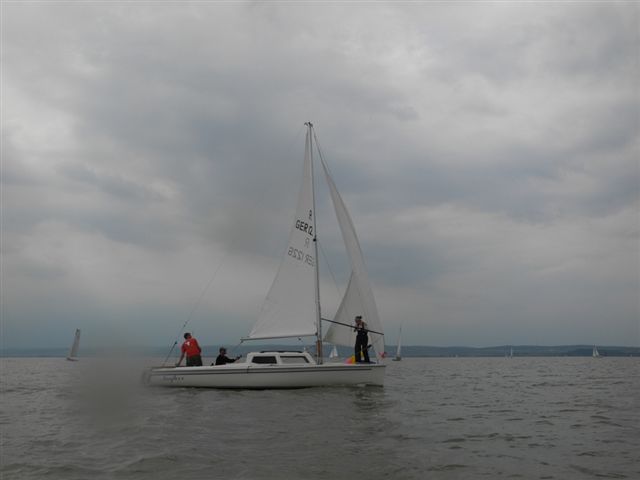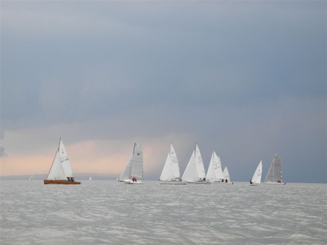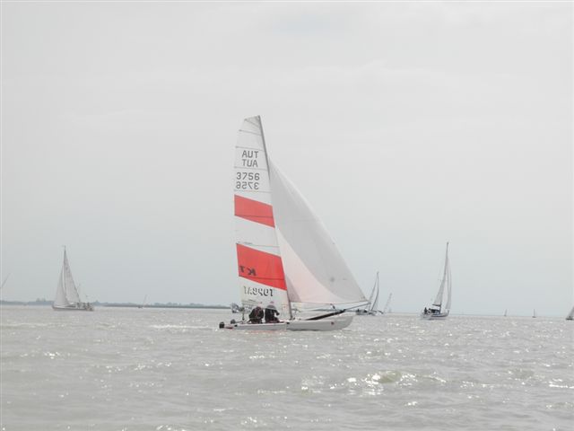 Die Wetterprognosen waren sehr unterschiedlich und schwer vorauszusagen. Die 1. Wettfahrt wurde pünktlich bei ca. 10 kn Wind gestartet. Während der Wettfahrt trübte sich der Himmel im Süden massiv ein. Die Wettfahrtleitung signalisierte darauf für die 2. Wettfahrt einen kürzeren Kurs um eine sichere Abwicklung für ein 2. Wettfahrtergebnis zu ermöglichen.