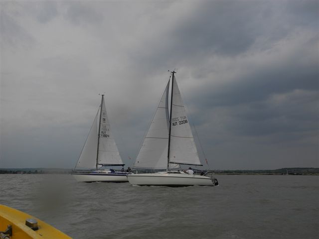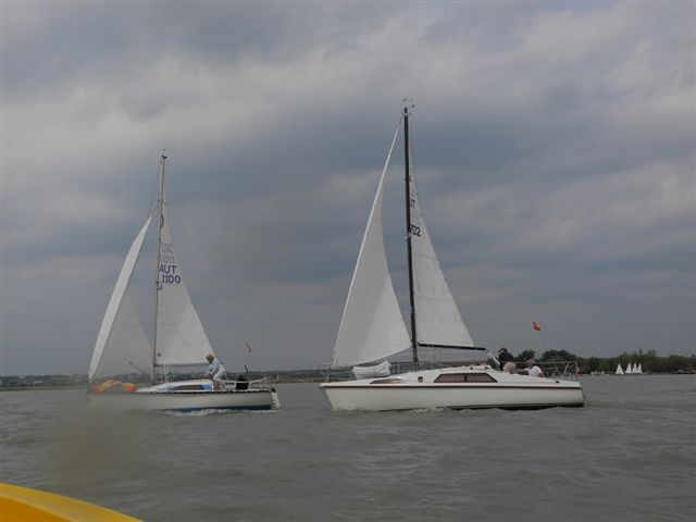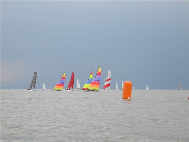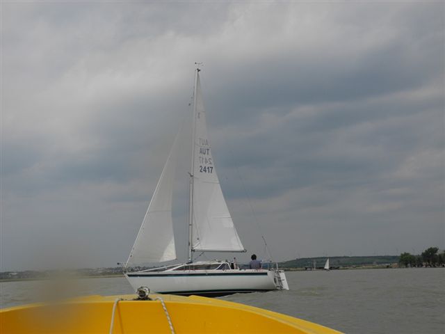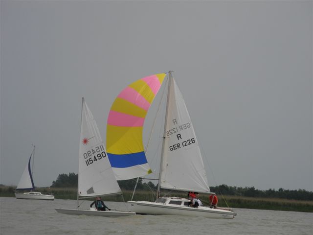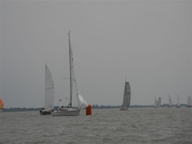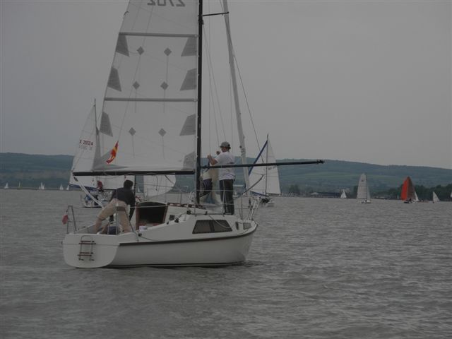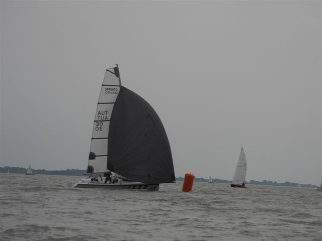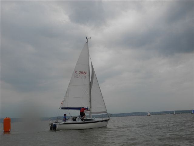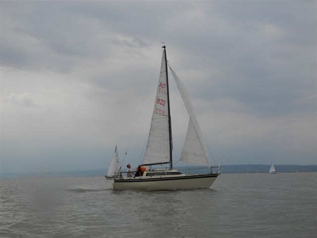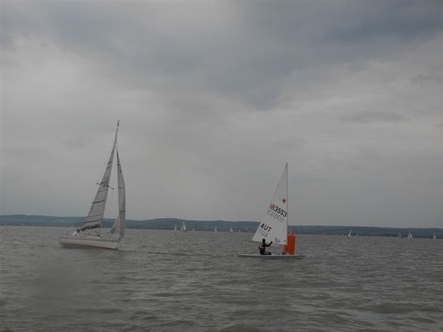 Die Wetterprognosen waren sehr unterschiedlich und schwer vorauszusagen. Die 1. Wettfahrt wurde pünktlich bei ca. 10 kn Wind gestartet. Während der Wettfahrt trübte sich der Himmel im Süden massiv ein. Die Wettfahrtleitung signalisierte darauf für die 2. Wettfahrt einen kürzeren Kurs um eine sichere Abwicklung für ein 2. Wettfahrtergebnis zu ermöglichen.
