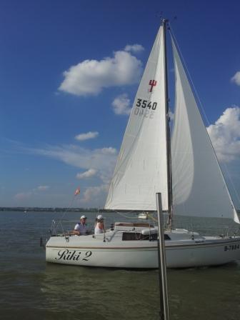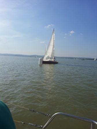 Aber 10 Minuten vor dem Bieranstich erfolgte das Auslaufen zu einer Wettfahrt, bei der uns der Wind auch so seine Schwächen zeigte.