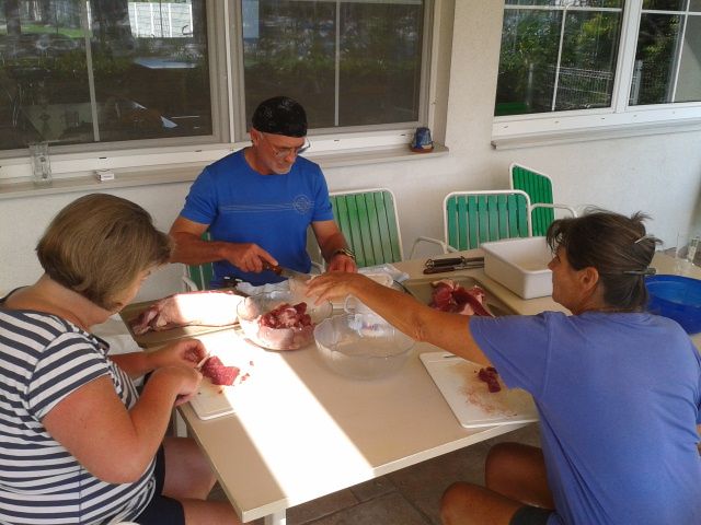 bedanken sich bei den lieben Gästen, für die schöne Geburtstagsfeier, bei Wildschweingulasch und speziellen Torten....