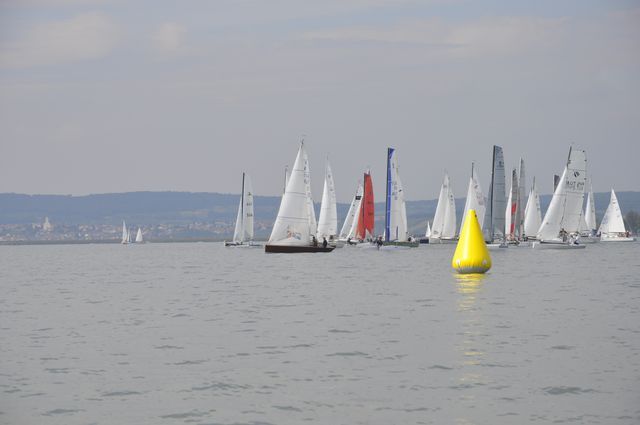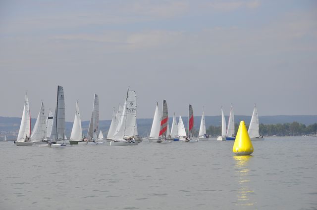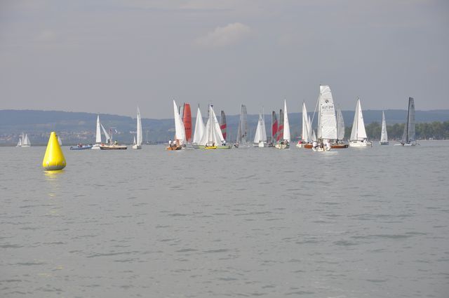 An die 30 Boote trafen sich um 14 Uhr an der Startlinie beim gemeinsamen Absegeln mit dem YCW,
