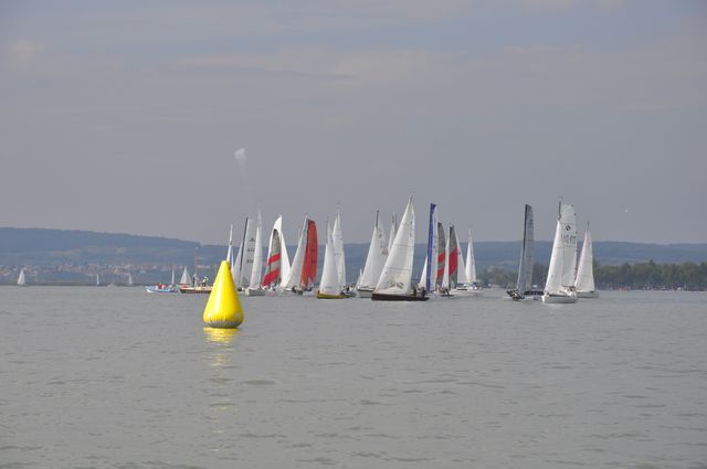 silberner, spiegelglatter See ohne Wind veranlassten die Wettfahrtleitung diese Wettfahrt zu beenden.