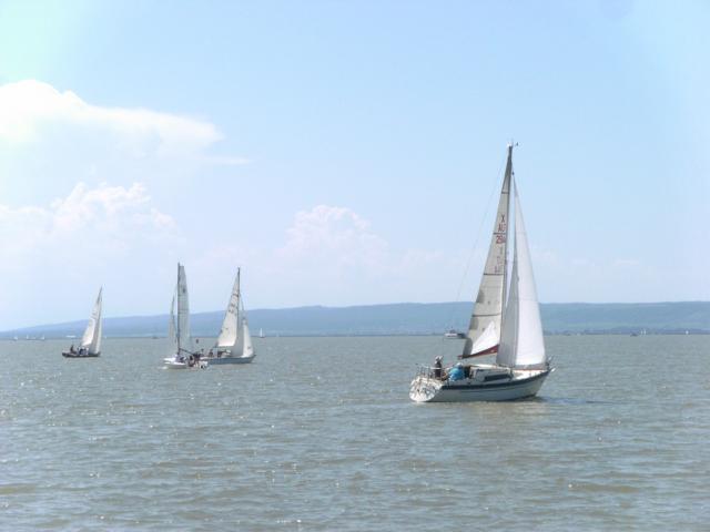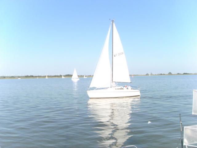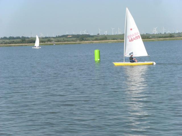 Lassen nichts unversucht, laufen aus und fahren 2 wunderbare Wettfahrten um die Luvtonne und um die Bauminsel, bei fast unfassbar viel Wind ( immerhin statt 2 Knoten 6,5 Knoten und das bis fast zum Schluss).