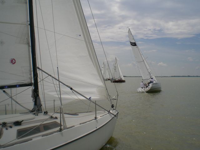Die Wettfahrtleitung nahm sich, nachdem schwacher Wind aus Süd aufkam, ein Herz und schickte uns um ca. 11 Uhr hinaus. Zu Recht, denn es konnten noch zwei Wettfahrten gesegelt werden.