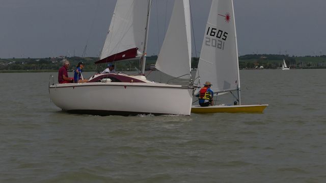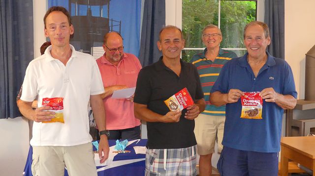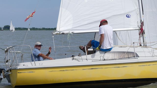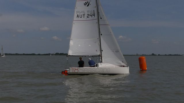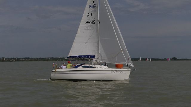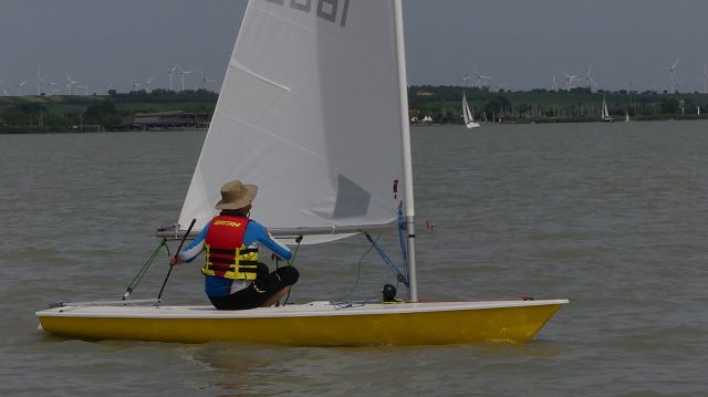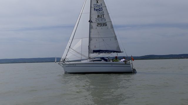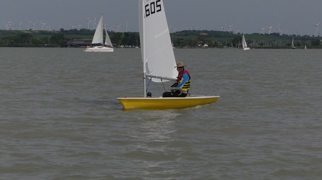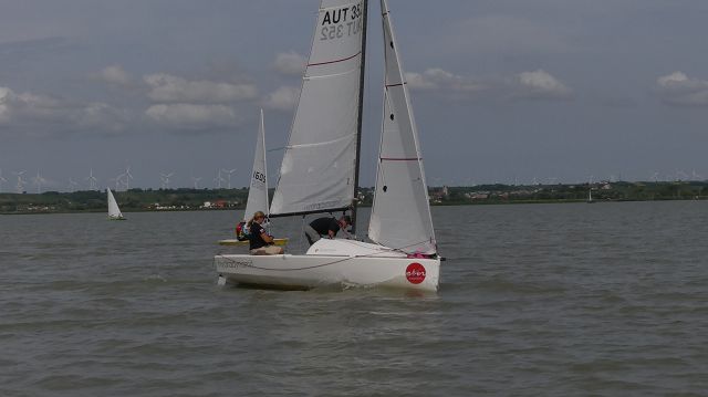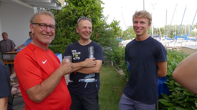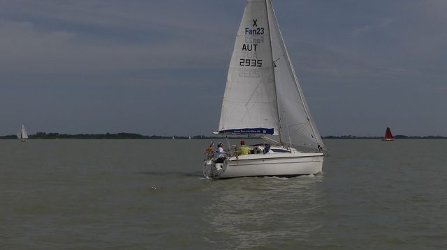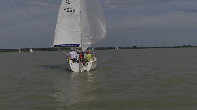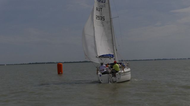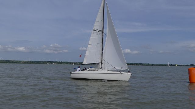 Kurz nach 13 Uhr ist doch etwas Wind aufgekommen,was unser Wettfahrtleiter Helmut flugs nutzte um uns auf die Bahn zu schicken. Bei gemütlichen 5-8 Knoten konnte eine Wettfahrt gestartet werden, allerdings ein massiver Windkipper direkt beim Start zwang uns die Wettfahrt abzubrechen und eine neue Bahn auszulegen um neuerlich zu starten. Zwei flotte und eine sehr gemütliche Runde um die Bojen brachten für die Segler die Wettfahrt zum Abschluss. Dann war der Wind wieder eingeschlafen und es bleib bei einer schönen Wettfahrt für alle.